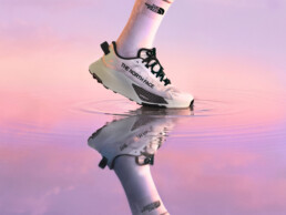 La tomaia è progettata per combinare traspirabilità e struttura. I rinforzi offrono supporto dove serve, mentre il sistema di chiusura garantisce una buona chiusura anche nei traversi. Interessante il dettaglio dei lacci racing con bordi seghettati, pensati per evitare che si allentino durante la corsa, un piccolo accorgimento che nei test si è rivelato efficace, la regolazione resta stabile anche dopo diverse ore di attività. La linguetta integra alette laterali e una fodera interna anti-detriti, soluzione che limita l’ingresso di polvere e piccoli sassolini durante le lunghe uscite.
